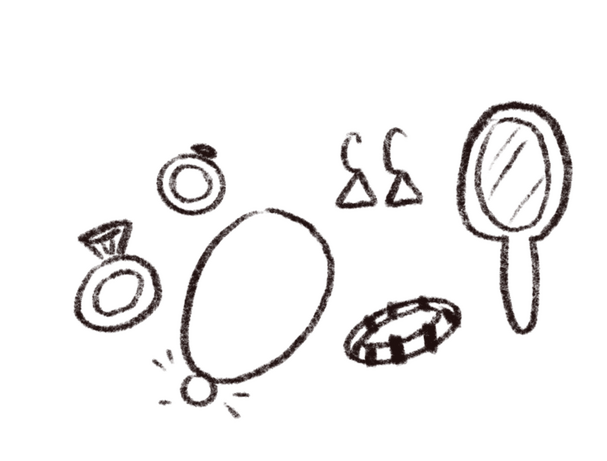 | 900 Gil |-'Pair of rings, small, encrusted with unknown white gems along the top'-